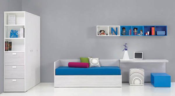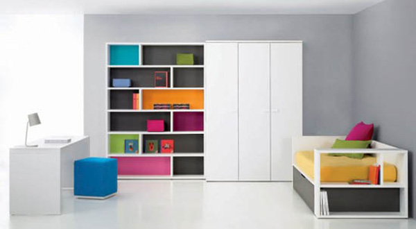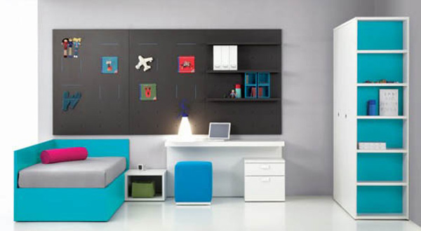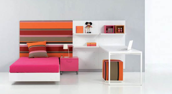 สีสันกับเด็กนั้นเป็นอะไรที่คู่กันอยู่แล้วเพราะสีสันนั้นเป็นการสร้างจินตนาการให้กับเด็กๆ ได้ดีทีเดียว สำหรับวันนี้ homedecorthai มีไอเดียการจัดห้องนอนเด็กในฤดูร้อนมาฝากเด็กๆ เป็นการตกแต่งที่ร่วมสมัยและยังอินเทรนด์ด้วยสีสันอันสดใสนี้ด้วย ซึ่งห้องนี้จะจัดไว้ได้อย่างลงตัวทีเดียวจะจัดห้องนอนเด็กด้วยการจัดเตียงนอนไว้ด้านบนและทำบันไดเล็กๆ เป็นทางขึ้นและตรงระหว่างช่องบันไดนั้นยังสามารถเป็นลิ้นชักที่สามารถเก็บของได้อีกด้วย ส่วนด้านล้างนั้นอาจทำเป็นมุมห้องรับแขกด้วยการจัดโซฟาที่มีสีสันสดใส ทำเป็นเตียงนอนด้านล้างหรือทำเป็นมุมห้องทำงานก็แสนจะลงตัว และที่สำคัญเราสามารถโยกย้ายได้ตามความต้องการด้วยซึ่งจะตกแต่งด้วยเฟอร์นิเจอร์ที่มีสีสันสดใส